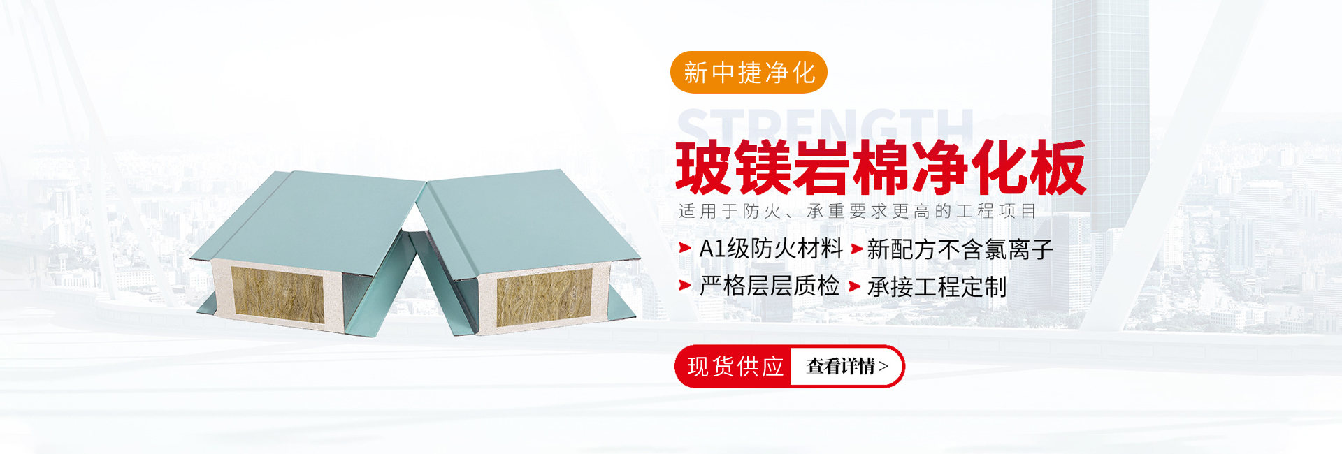 凈化板可選用巖棉、玻璃絲綿、玻鎂板紙蜂等七種芯材,彩鋼板、鍍鋅板、鍍鋁鋅光板、不銹鋼、三合板等十幾種敷材,二十余種板型的復合板。廣泛使用于制藥、食物、生物、航天航空、等工...